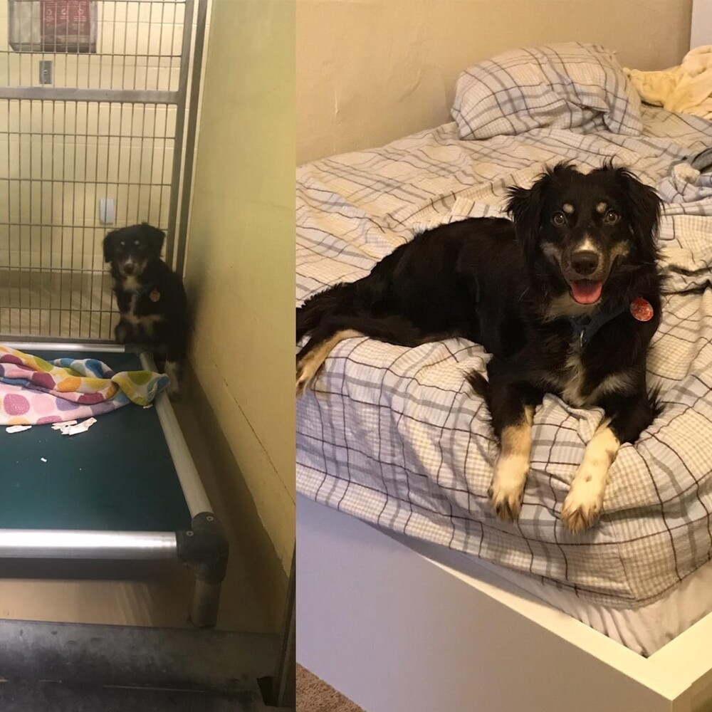 14. A month ago we adopted this cutie from the shelter, look how happy she is
