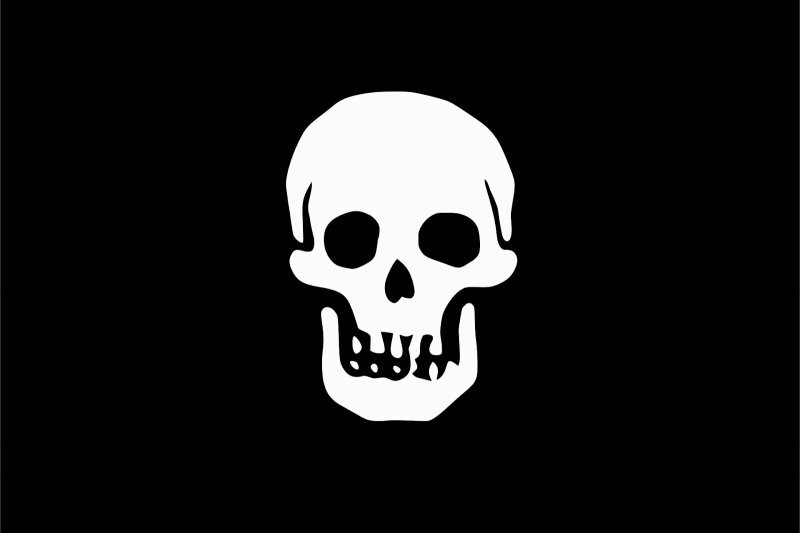 The supposed flag of Captain Teach is a black canvas with a skull, one of the symbols of death in Christianity. An alternative flag is a blood-red canvas without symbols