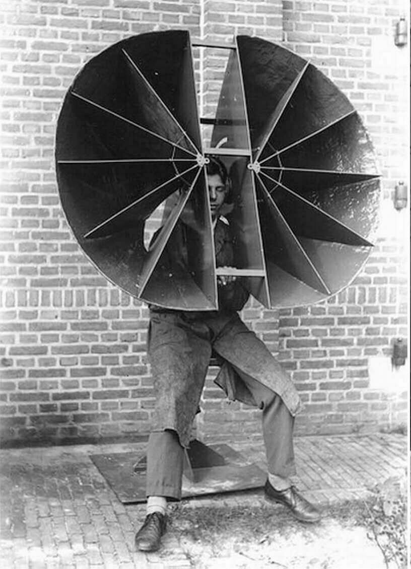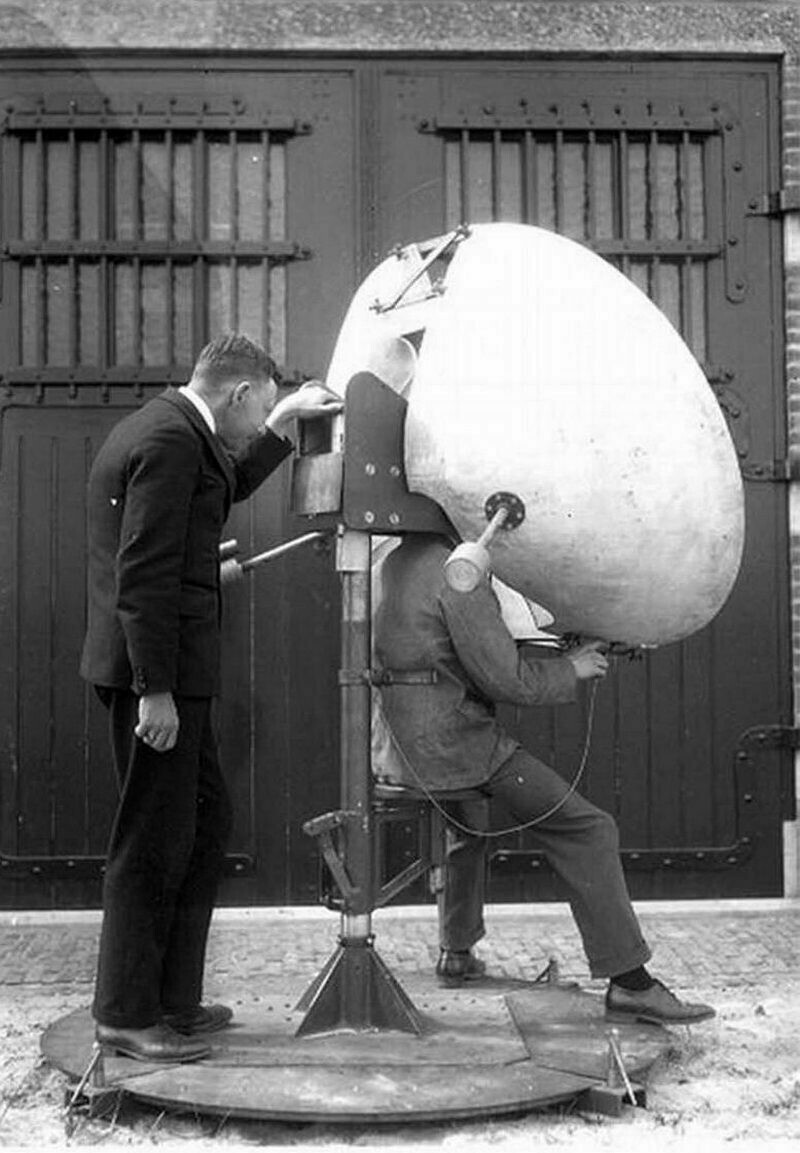 No, these are not devices for communicating with aliens: giant locators on the ears helped detect planes and airships.