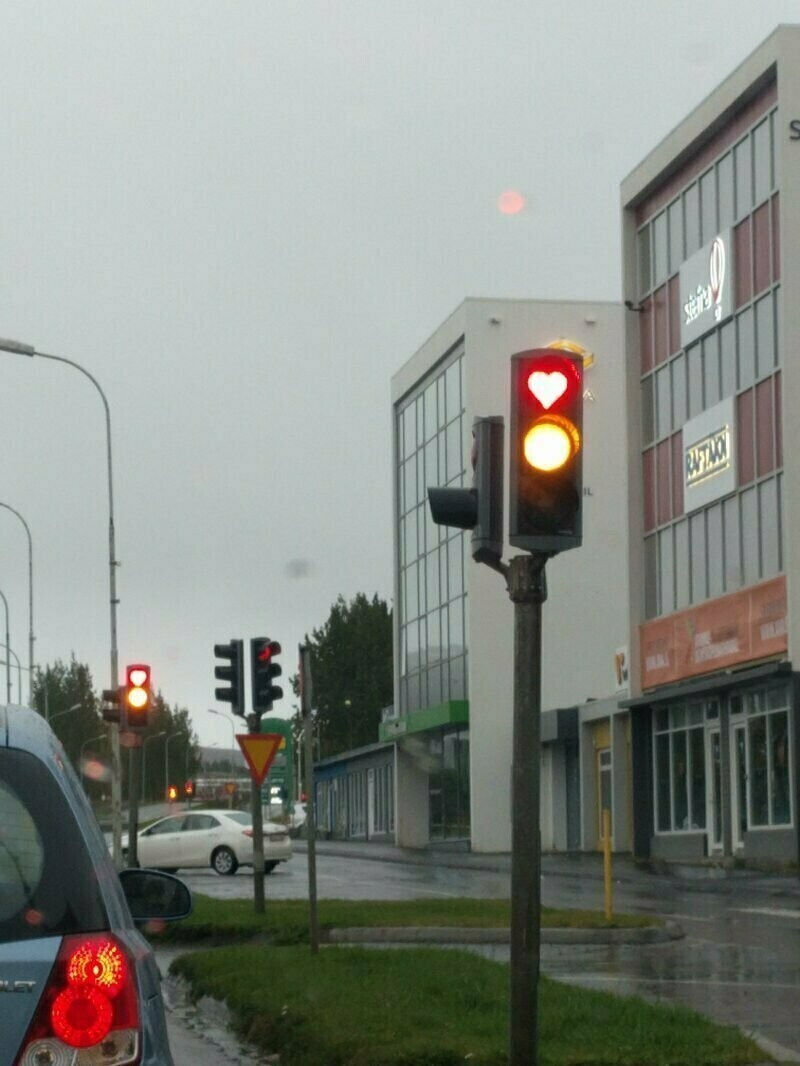 The red heart on the traffic light, of course, prohibits traffic, but it does it with love.