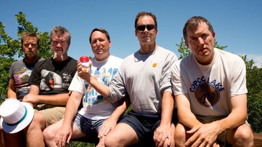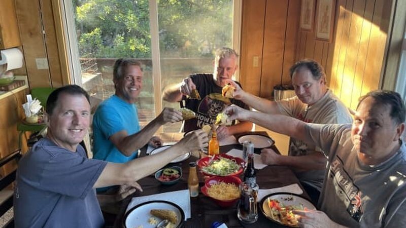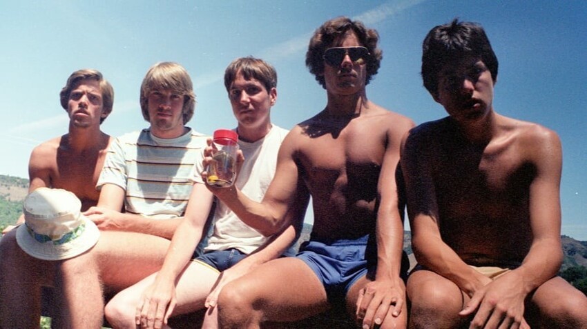 Five friends from California, John Wardlaw, Mark Rumer-Cleary, Dallas Burney, John Moloney and John Dixon, have been taking the same group photo near Lake Copco for 40 years. Every five years they sit down in the same order, having previously taken with them an empty jar and a hat, and repeat the photo. Neither the pandemic nor one of the men’s cancer experiences could stop them from continuing the tradition this year.