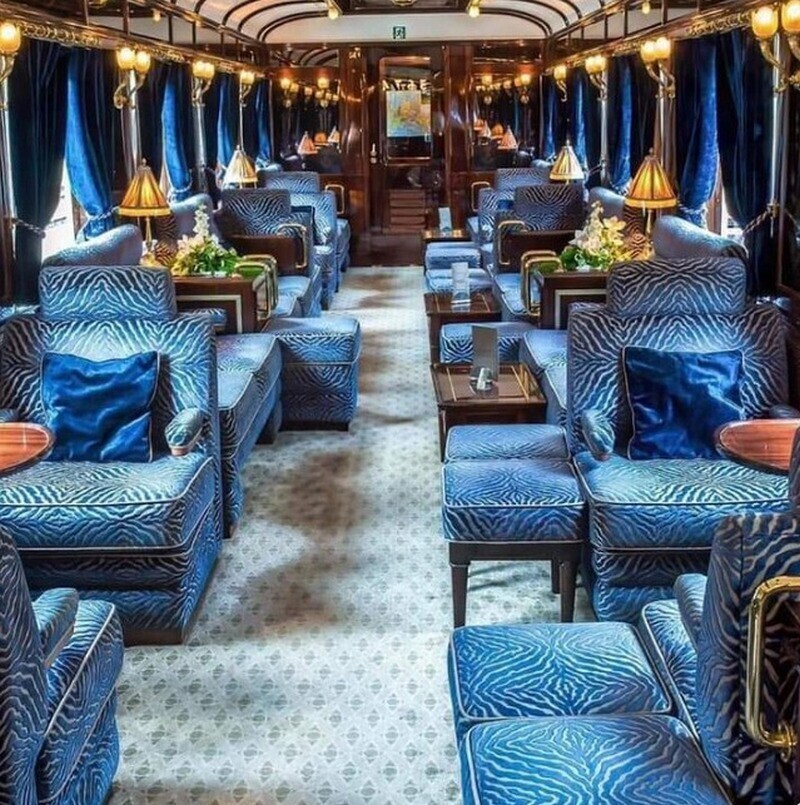 In the carriage of the Orient Express: this is a train that launched between Paris and Constantinople in 1883.