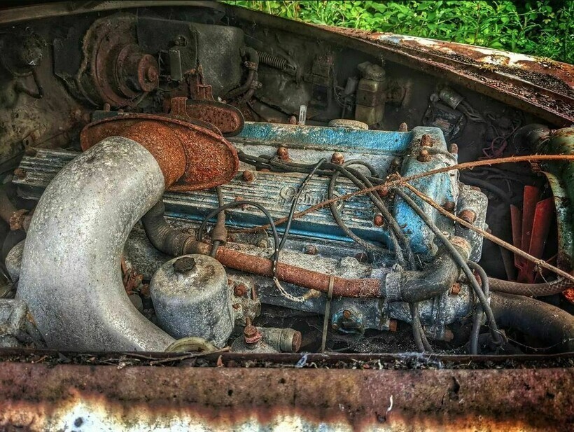 Everything looks sad under the hood too: the engine is completely rusty