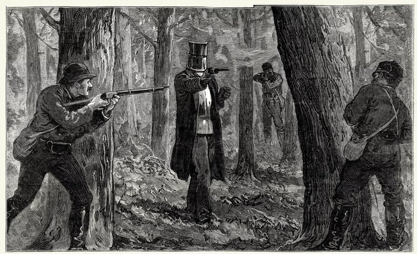 Three gang members wore wooden armored suits and helmets made from plow boards. Sympathetic farmers gave them the boards, and a local blacksmith helped them make the costumes.