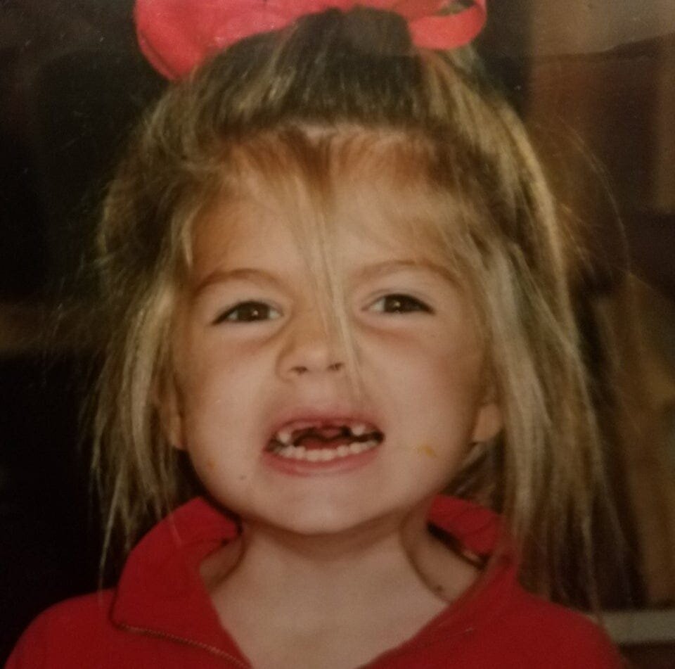 This photo was taken after I spun and knocked out my four front teeth by crashing into a kitchen chair.