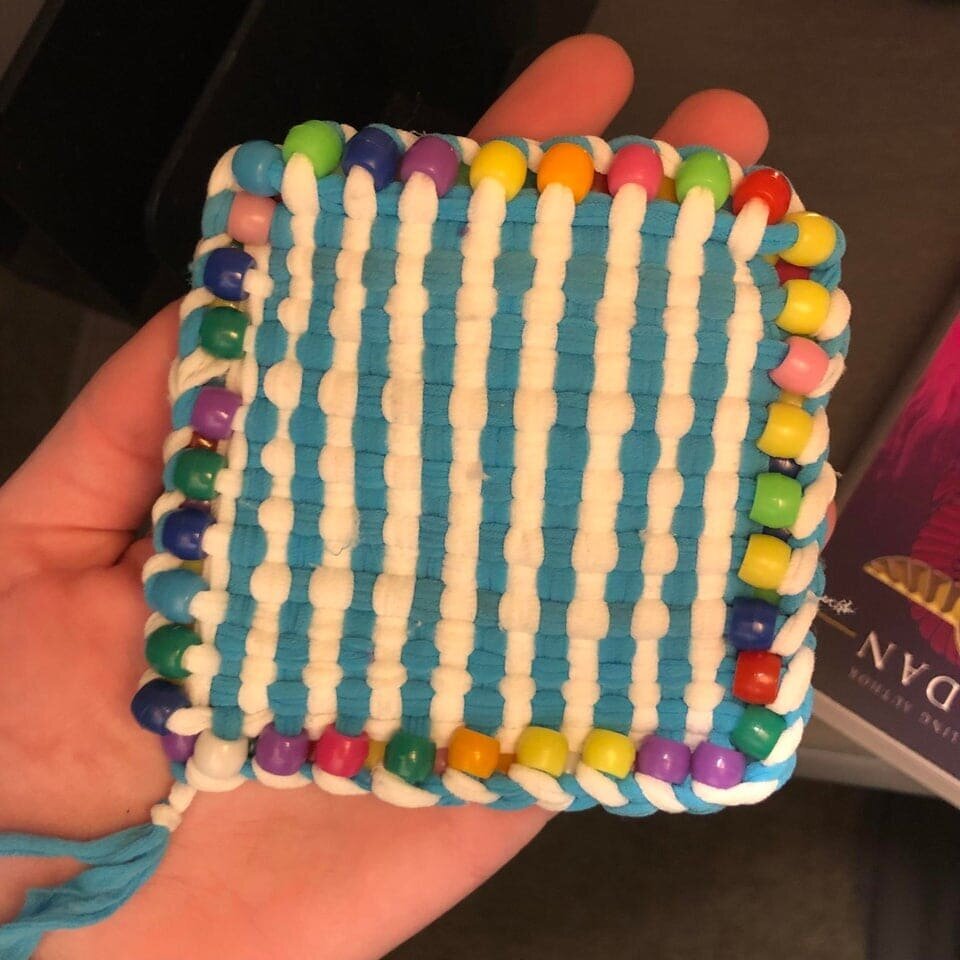 7. When I was little, I made a stand for frying pans - it has plastic beads on it