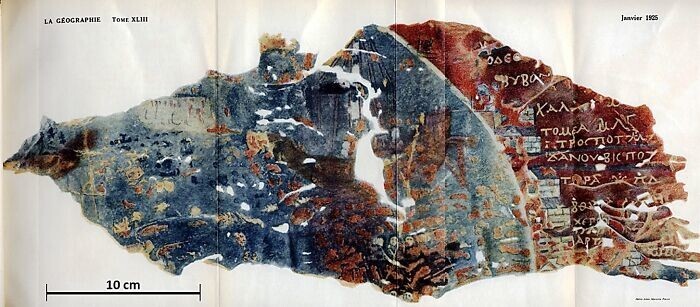 A parchment from Dura Europos depicting part of the Black Sea coast, dates to around 200 AD. The map was found in 1923 by F. Cumont in Syria.