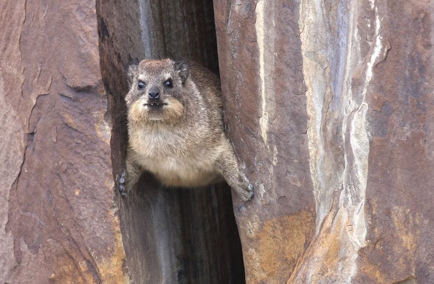 This unusual shape of the legs, coupled with their sweating, helps the hyrax to literally “suck” to stone ledges and excellently climb rocks, of which there are simply plenty in its habitat – South and East Africa.