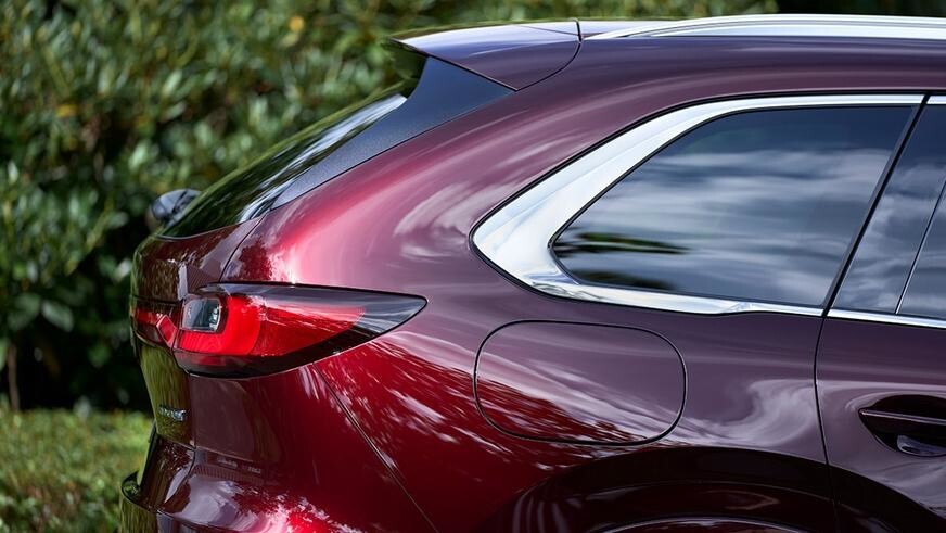 The Mazda CX-80 turned out to be about a quarter of a meter larger than the platform CX-60. With a length of 4995 mm, the wheelbase of the crossover is 3120 mm. The new product received a common front design for the entire family, but the rear was designed with its own design, with characteristic rear pillars, a spoiler and chrome trim around the windows. Trunk volume is from 258 to 1971 liters.