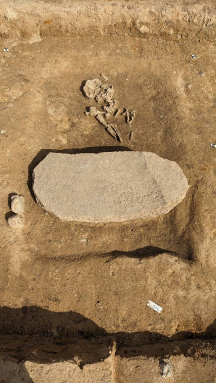 “This is an adult man, from 40 to 60 years old. He lies on his left side, with his legs bent, and facing east,” said excavation director Uwe Moos. “A large stone about a meter long, 50 centimeters wide and 10 centimeters high was placed across his shins. centimeters".