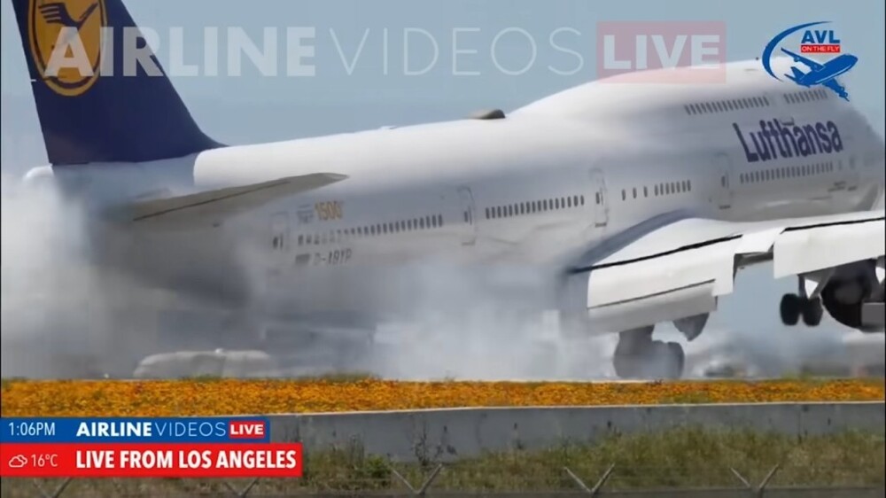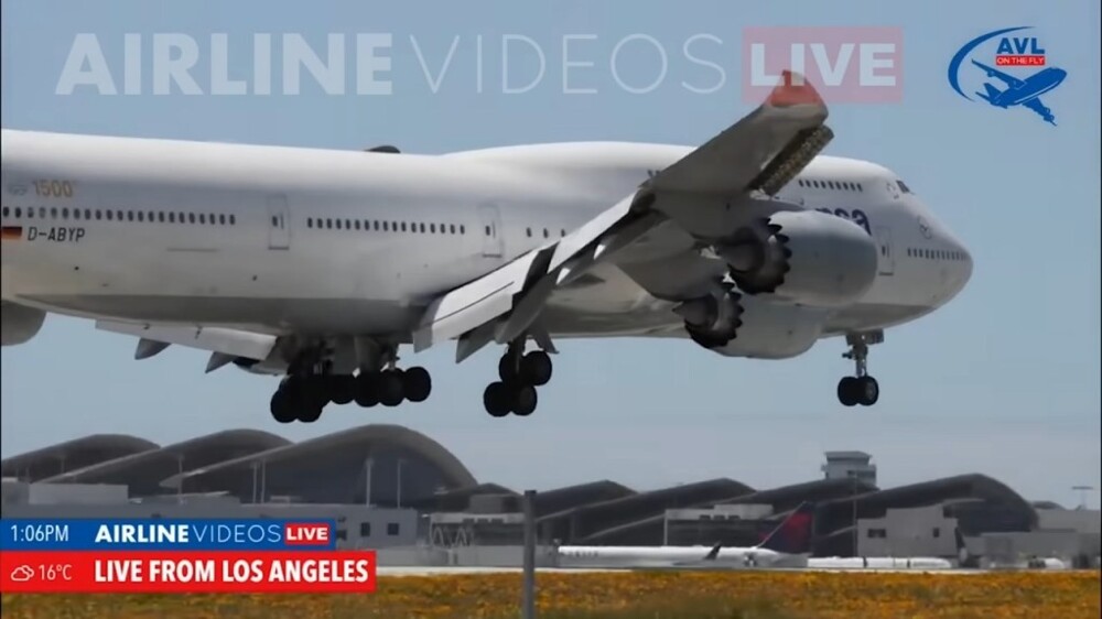 "Don't miss the dramatic footage of a Lufthansa Boeing 747-8i landing in front of the Airline Videos Live cameras at LAX on Tuesday, April 23, 2024," the caption reads.