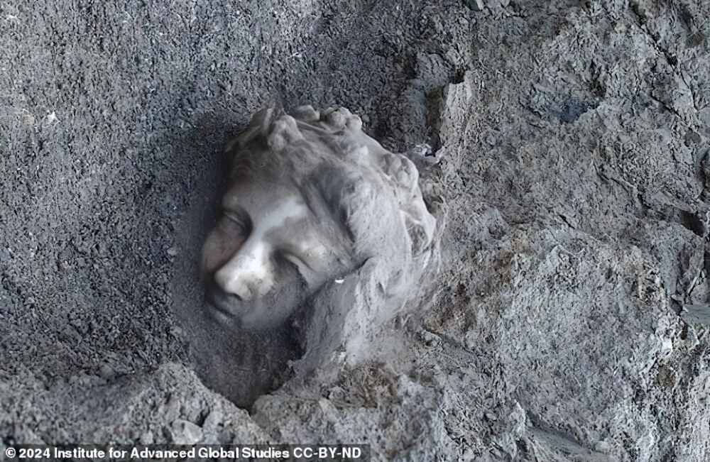 A face from history: a statue of the god Dionysus being carefully cleaned of thousands of years of volcanic deposits