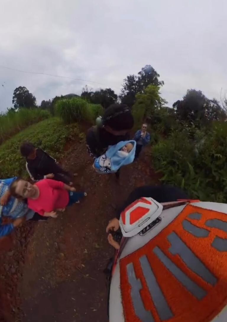 In other pictures, a woman and her 4-month-old baby with pneumonia are put on a helicopter and sent to the hospital.