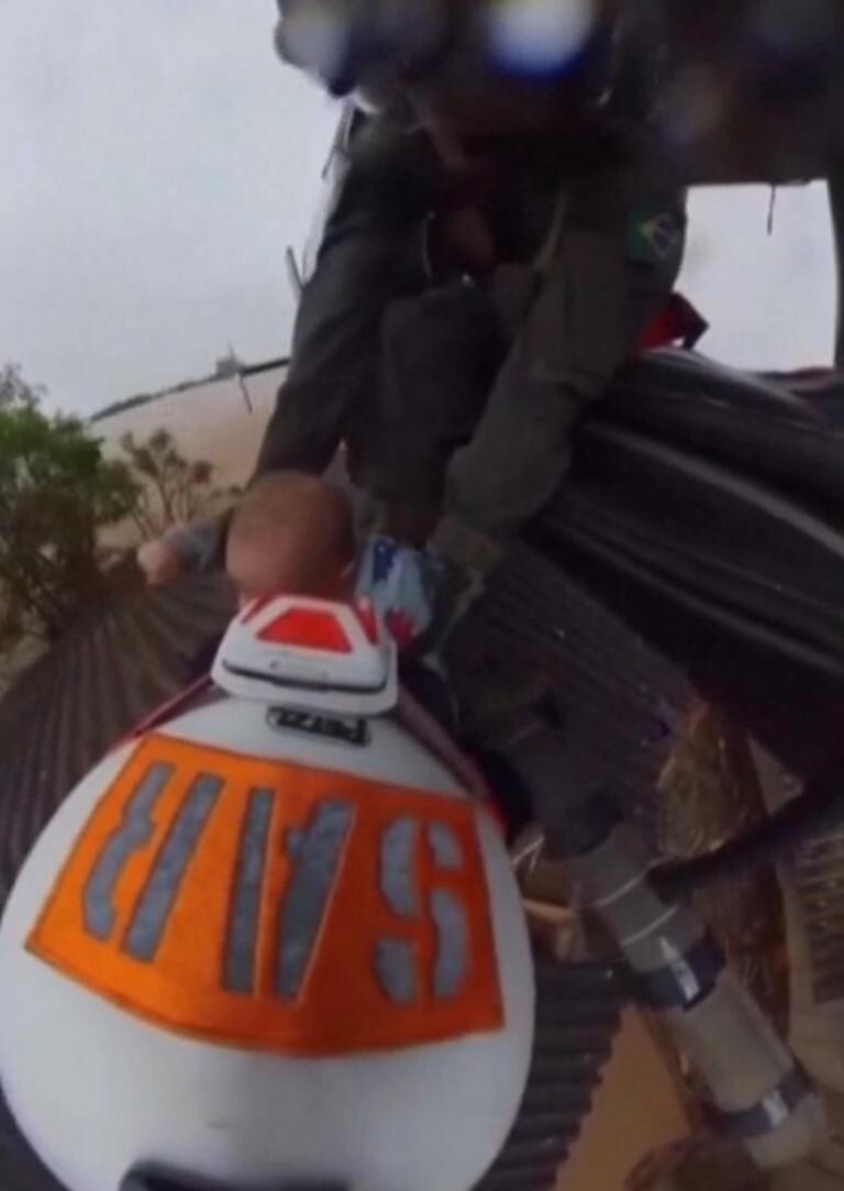 The south of Brazil has been hit by horrific flooding. Families fled to roofs and attics to escape the elements. The media showed footage of a military man breaking through the roof with a brick and pulling out a baby. And he does this while suspended on a cable from a helicopter.