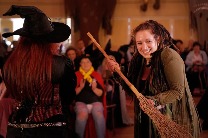 The role of the Witch of Wookey Hole is part of the tourist attraction of the cave show, which is organized in the settlement, with lighting, various exhibitions, classic arcade machines, a kiosk, a cafe and a cinema. Children really like it here.