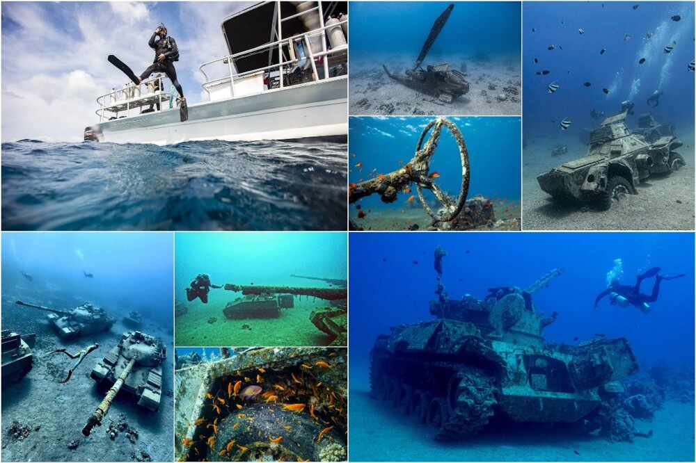 The Underwater War Museum is a new and unique diving site in Aqaba. The museum attracts divers due to the rich marine life on former combat vehicles.