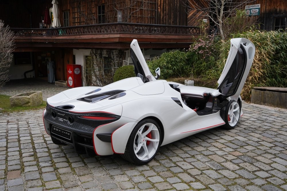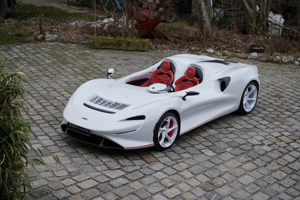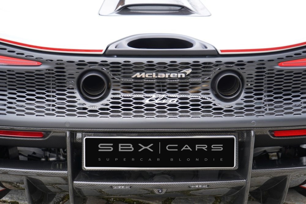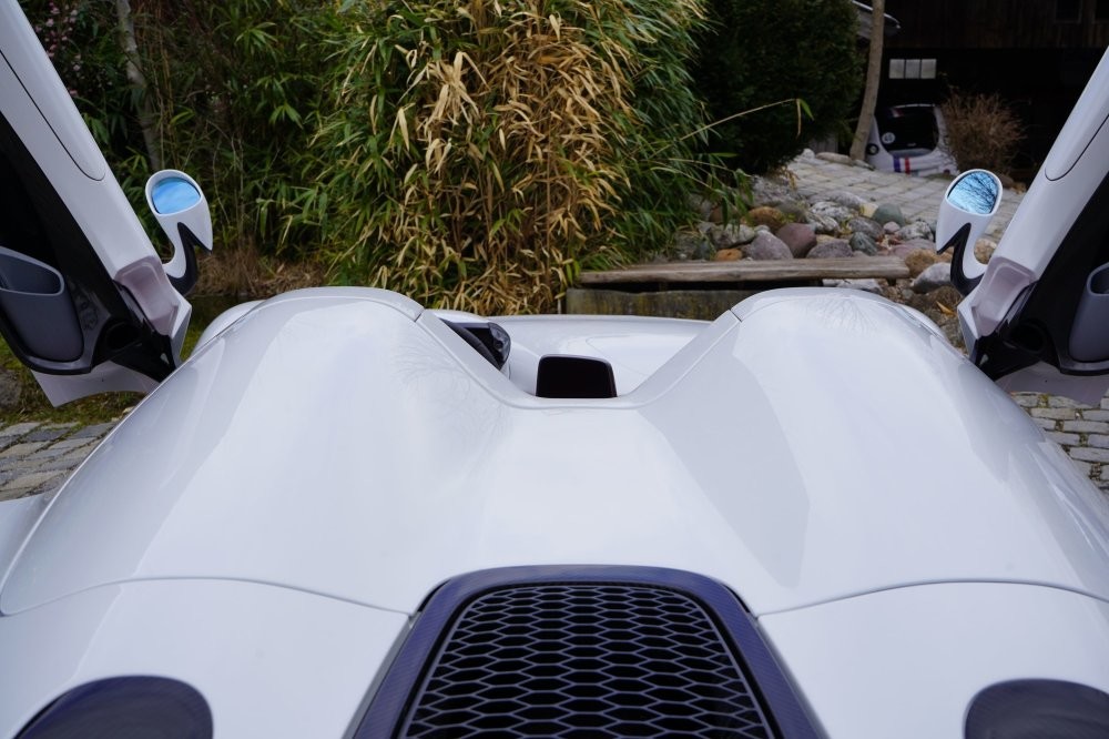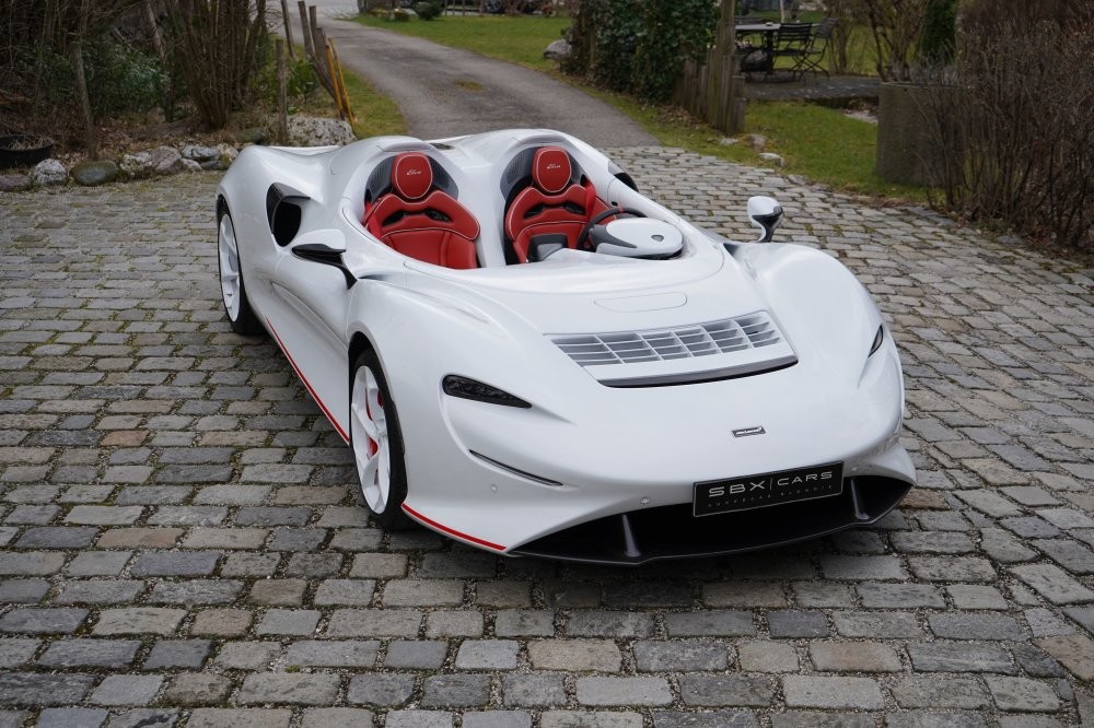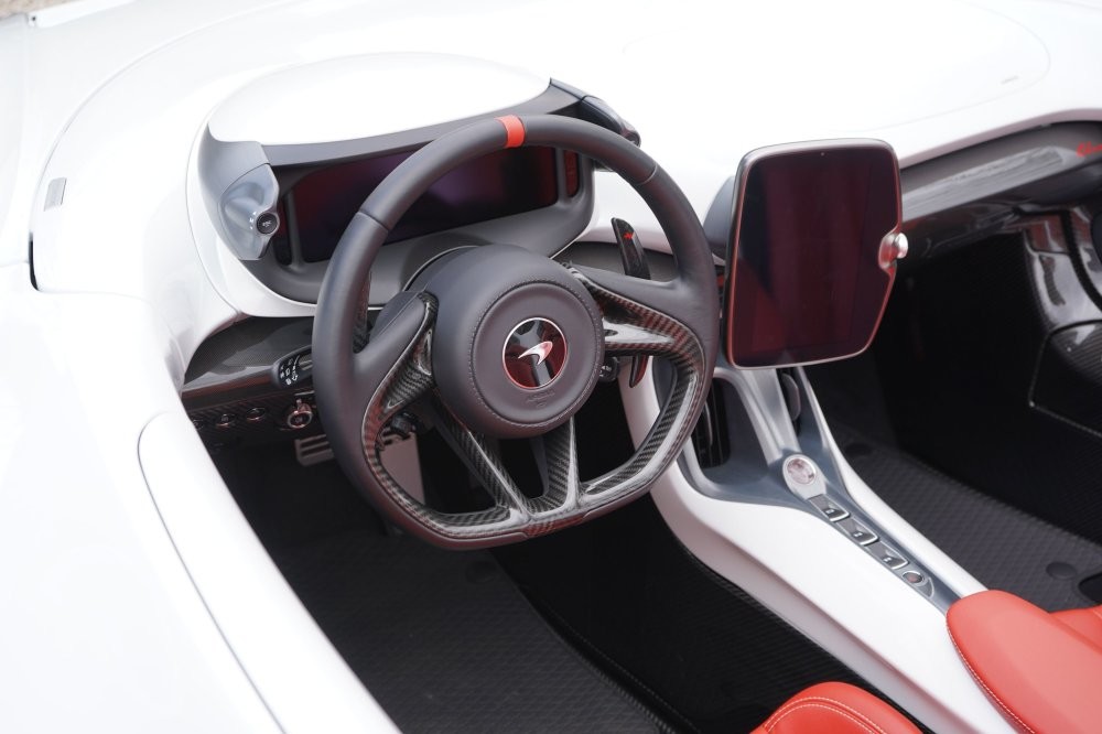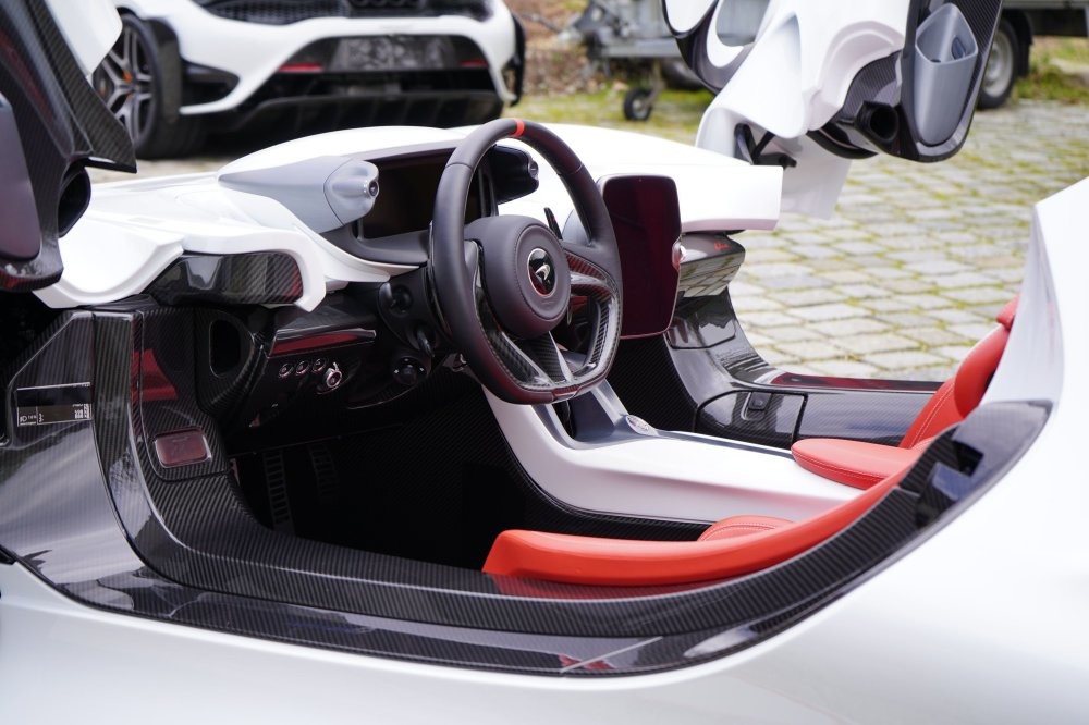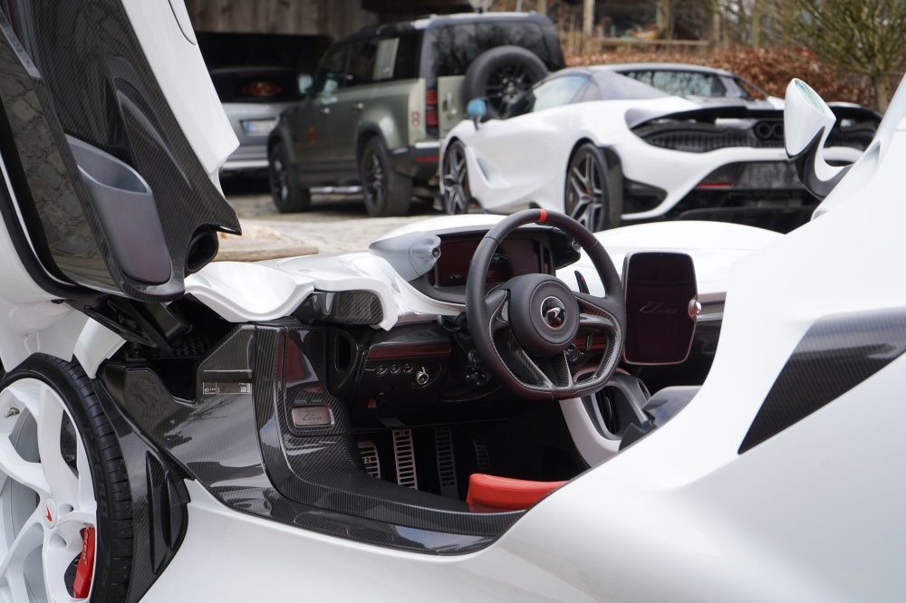 Another advantage of the McLaren Elva is its finishing - the body of the supercar is painted in white, almost never used on other cars, which is combined with red accents and unpainted carbon fiber.