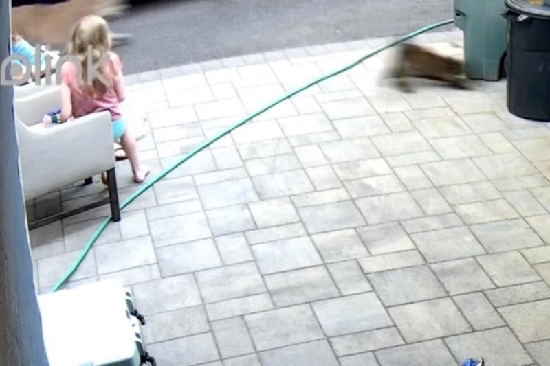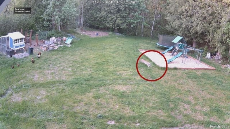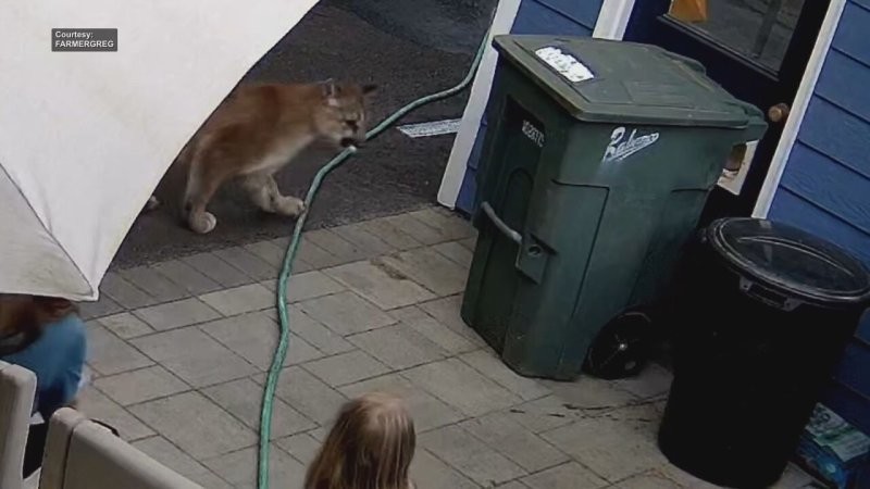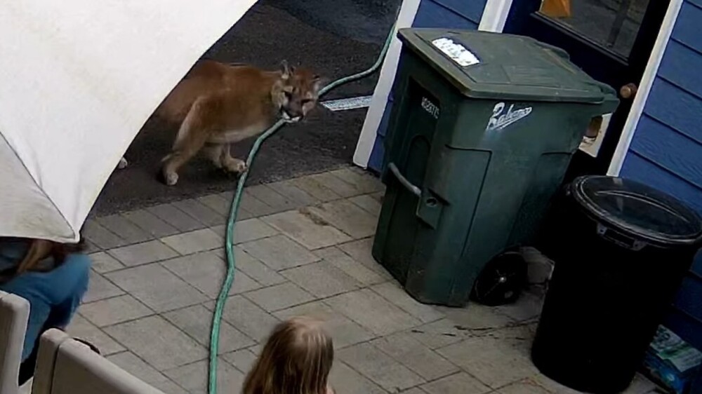 The surveillance camera captured the moment the cougar ran into the yard and came within a meter of the residents. The incident occurred on Saturday in Washington state while the Havener family was relaxing outdoors.