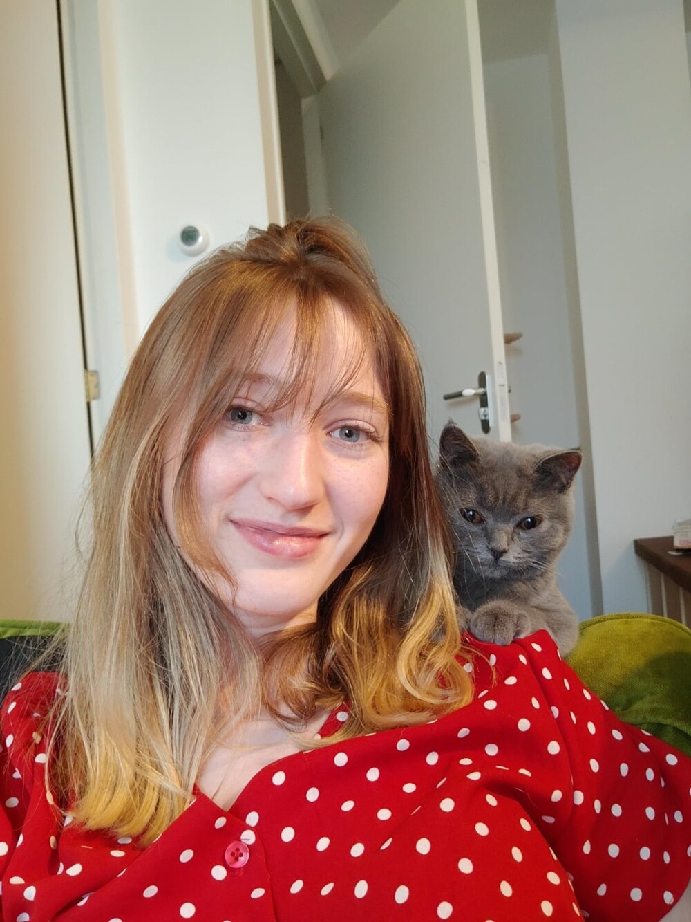 14. My cat always puts her paw on my shoulder when I’m video chatting with someone.