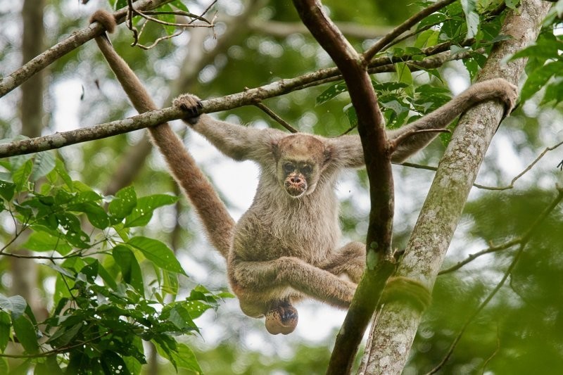 The largest and heaviest monkey living in North and South America is a folivore, that is, it feeds mainly on the leaves and fruits of some trees. The primate's large and incredibly strong tail is used with amazing dexterity and functions as a fifth limb to swing under the rainforest canopy.