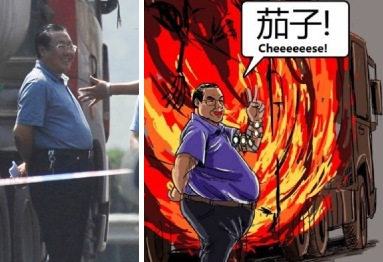 After the tragedy was reported throughout the country's media, a photo of a plump Yang Dacai smiling while inspecting the scene of the accident in which 36 people died sparked public outrage and spawned hundreds of memes.