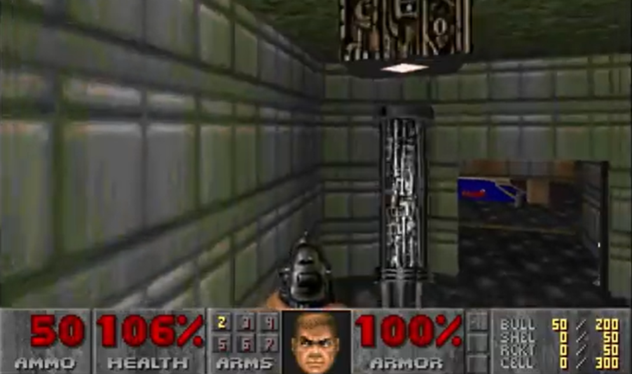 Then Carmack sat down to write his own engine for the game with a system of binary partitioning of space. Thanks to this technology, only those surfaces that the player himself saw were drawn in each frame. Also, the engine provided a medium detail mode to speed up the game, advanced lighting, and even the presence of weight and momentum for the characters.