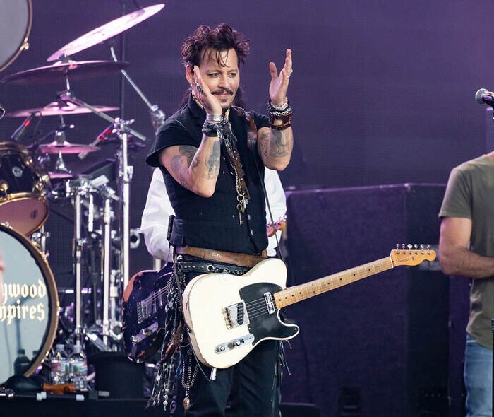 Depp's guitar can be heard, for example, in the song The Snake on the album That Woman's Got Me Drinking by the great Irish drunkard Shane MacGowan and his band The Popes, in the song Fade In-Out by Oasis, in the composition You're So Vain from Marilyn Manson's album Born Villain.