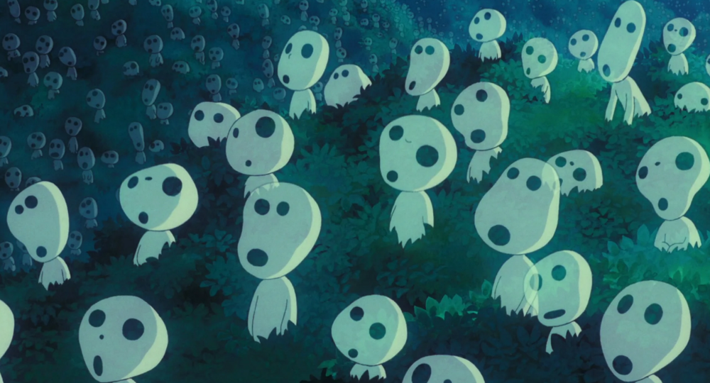 These are the spirits of the forest from Miyazaki, perhaps stones with faces are much deeper in Japanese culture than in ours, that’s why they are interested