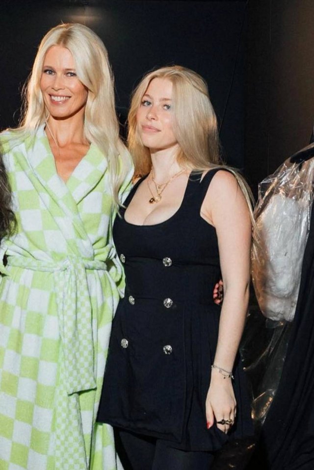 Users are discussing the appearance of 19-year-old Clementine Poppy De Vere Drummond, the daughter of model Claudia Schiffer, who recently attended one of the presentations with her mother.