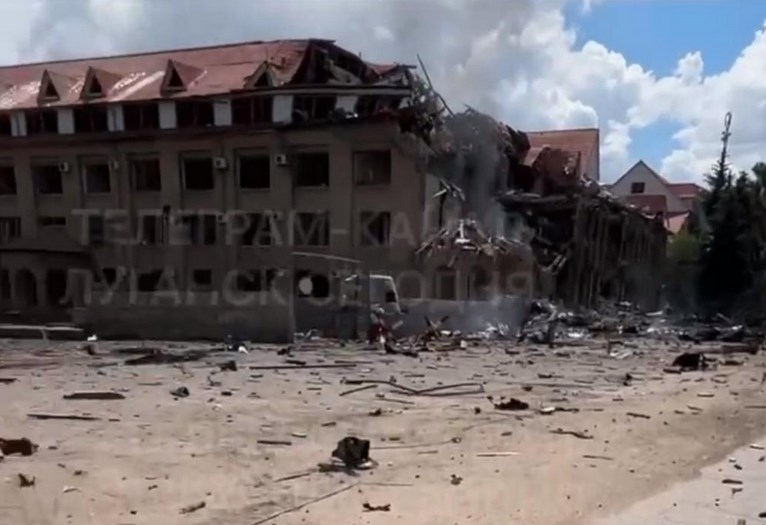 Something big flew into occupied Luhansk, to a building seized by the Russian military in 2014