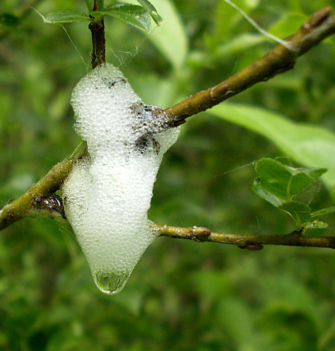 When we were kids, we called it “rabbit saliva.” Scientists say that the substance does not contain spit. It consists of mucin. In general, even we have this thing: mucin is the main component in the secretions of all mucous glands. But the pennice whips up the secretions, wrapping itself in sticky, nasty foam. In this outfit, she is protected from drying out, and from predators, and from bad weather, and from - ta-dam! - insecticides. And your hand will involuntarily reach out for poison if you notice how a cicada spits on your gardening efforts.