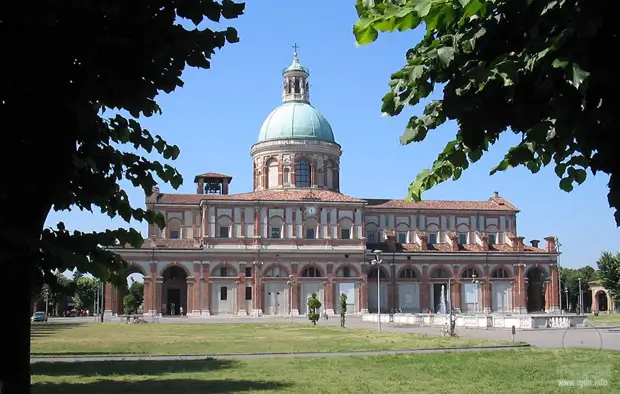 In the village of Caravaggio there is a sanctuary dedicated to Santa Maria del Fonte (St. Mary of the Spring). According to legend, she appeared to a shepherdess on May 26, 1432 in this very place. The sanctuary consists of a monumental church surrounded by landscaped gardens and four symmetrical porticoes.