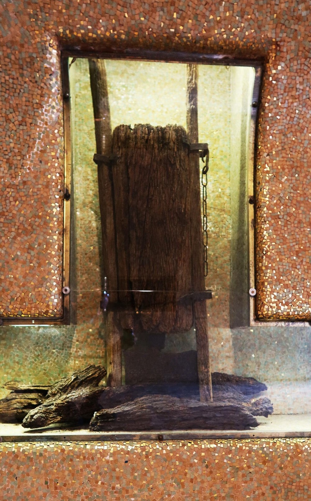 Legend has it that in 1520 a robber was captured and sentenced to capital punishment. On the verge of death, this man repented and asked Mary for forgiveness. As a result, the guillotine “refused” to behead him, sparing his life. This is one of several supposed miracles associated with St. Mary, and since that day this instrument of death has been kept in the sanctuary as a relic.