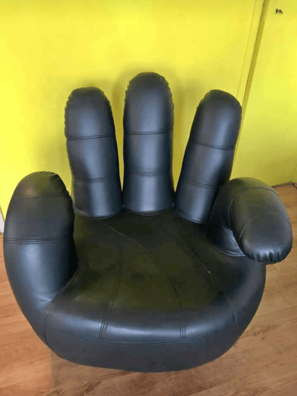 A chair in the shape of a plump palm. Surely it’s very comfortable to sit in it with a book in your hands