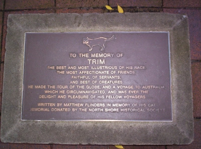 There is a separate plaque dedicated to Trim, which contains the first lines of the epitaph that Flinders wrote for his cat: “To the memory of Trim, the best and most illustrious of his race, the kindest of friends, the faithful of servants and the best of creatures. He circumnavigated the entire globe, made a voyage to Australia, which he circumnavigated, and was always a joy and pleasure to his shipmates.”