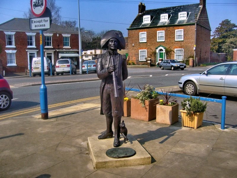 Trim stands at Flinders' feet in Donington, Lincolnshire, where Flinders was born. And in Port Lincoln, South Australia, Trim froze at the feet of his kneeling owner.