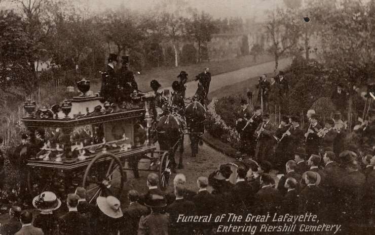 Unfortunately, on May 5, 1911, Beauty died, having lived, with care and attention, to the ripe old age of 15 dog years. The upset Great Lafayette ordered his beloved to be buried in Piershill Cemetery in Edinburgh, having previously agreed with the authorities that he would be buried in the same place when he passed away.