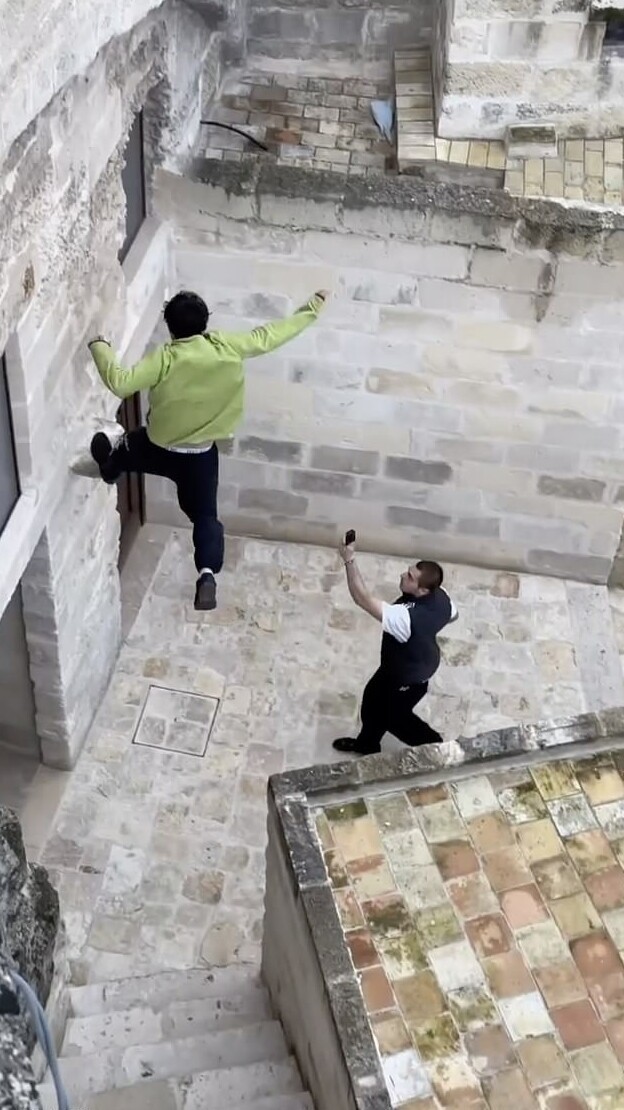 The shocking footage was shared by choreographer Luca Tommassini, who commented: “This is a UNESCO World Heritage Site. How dare you? Do you know where you are and what you are touching? Matera is not a place for parkour, this stone is probably from the times when America was discovered, or even earlier."