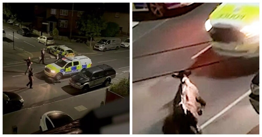 At approximately 8:55 pm on Friday (June 14), Surrey Police received a report of a cow running through the streets in Staines-upon-Thames. The footage, which has since gone viral, shows a police car ramming the animal twice. They wanted to catch it so much that they overdid it a little!