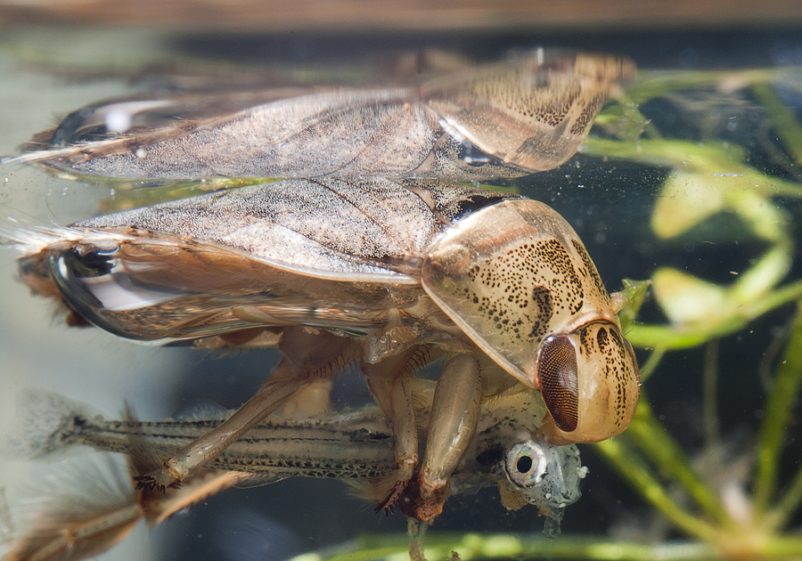 But he himself can clearly see what he can grab for lunch. The bedbug has a varied diet: it will with equal pleasure grind up both a gaping fry and a fly that has plopped into the river. Moreover, he will not disdain individuals of his own species if he notices that he is superior to them in the weight category. But we must give the smoothie its due: with its gluttony it brings benefits. Among his favorite foods are mosquito larvae. And, admit it, we suffer from mosquito bites much more often than from some kind of water bug.