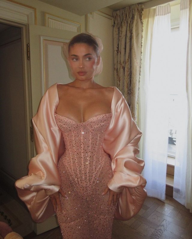 The famous model Kylie Jenner arrived at Fashion Week in Paris. The celebrity attended the couture show of the Schiaparelli fashion house. A custom translucent dress in a soft pink shade, studded with rhinestones, was sewn especially for the model.