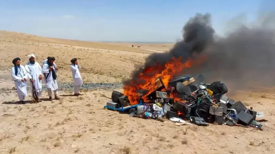 The Ministry for the Promotion of Virtue and the Prevention of Vice (a funny name, like something out of a dystopia) held a burning of “vicious” instruments. In the western province of Herat, guitars, harmonicas and speakers were piled up. This is because “non-Islamic music” could be played on them.