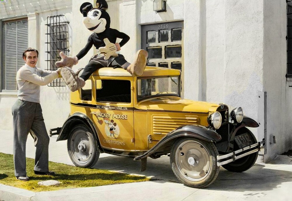 Walt Disney with Mickey Mouse near his studio. Los Angeles, 1931