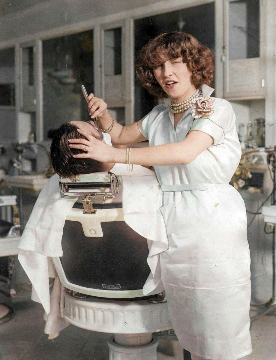 Pictured is Miss Jean Devereux, the first licensed female hairdresser.
