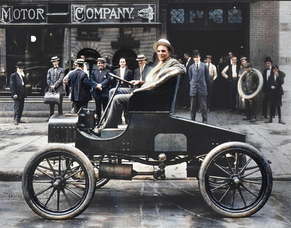 In 1896, he made his first gasoline-powered automobile, and in 1903 he founded the Ford Motor Company, which quickly became a leader in the automobile industry through assembly line assembly.