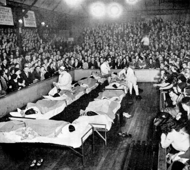 It was possible to sleep at the “carnival” only a couple of hours a day; after a sound signal, the assistants abruptly rolled out beds onto the dance floor, where the exhausted assistants fell and instantly fell asleep. If someone did not wake up at the signal, then the men were doused with ice water, and the women were slapped in the face and given smelling salts.
