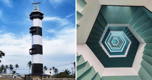 Almost all lighthouses are impressive with a view from above on the stairs inside, but then there’s this color scheme!
