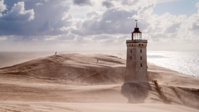 Surprisingly, this lighthouse, surrounded by sand dunes, is actually located in Denmark. On the North Sea coast.