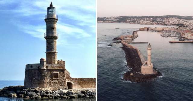 It was erected in 1887. The only lighthouse in Greece built directly into the sea. And this staircase!
