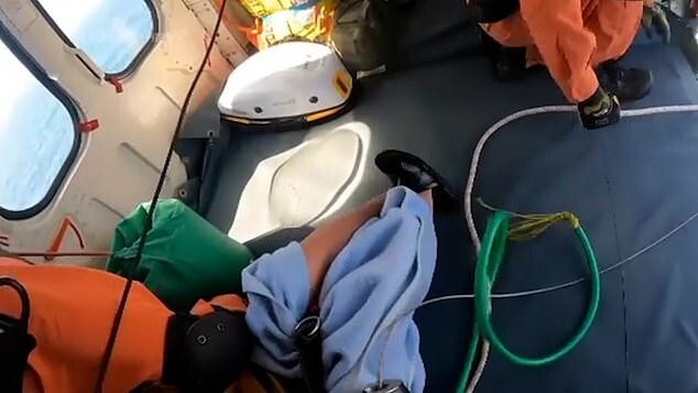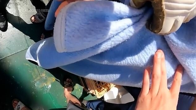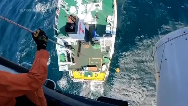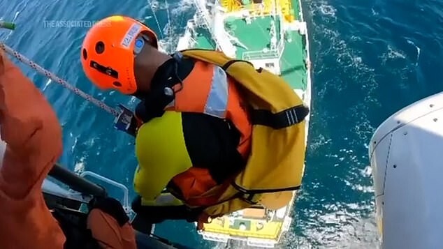 Members of the tanker crew said that the tourist was rocked on waves about 2 meters high. She looked exhausted.